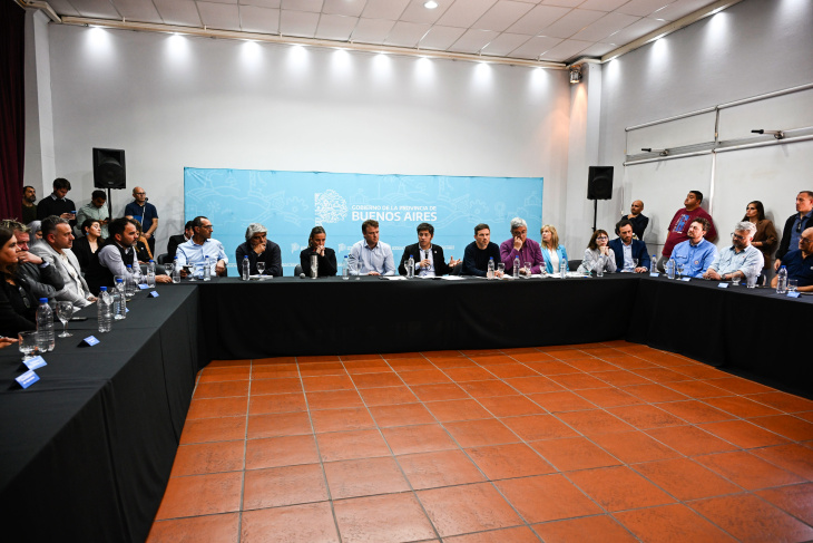 El gobernador de la provincia de Buenos Aires, Axel Kicillof, encabezó este miércoles una reunión con representantes de diferentes sectores productivos, comerciantes y referentes gremiales del municipio de Olavarría, junto al ministro de Producción, Ciencia e Innovación Tecnológica, Augusto Costa; y el intendente local, Maximiliano Wesner.