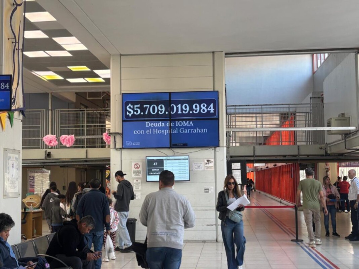 Luego de los reiterados reclamos por parte del Gobierno nacional por la deuda del Instituto Obra Medico Asistencial (IOMA), esta mañana se conoció una imagen en la que se ve una pantalla gigante, dispuesta en una de las salas de espera del Hospital Garrahan, que reflejó la deuda al nosocomio por más de 5 mil millones de pesos.