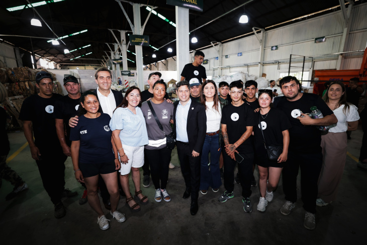 Durante la jornada, Kicillof junto a la ministra de Ambiente, Daniela Vilar, inauguró formalmente la planta de reciclado “Manuel Belgrano”, que fue reacondicionada y equipada para que la cooperativa “Cielo Abierto Tres Estrellas” pueda llevar adelante tareas de clasificación y recolección diferenciada de residuos. En este marco, se puso en funcionamiento un autoelevador y se entregó maquinaria, equipamiento, mobiliario para el dictado de talleres, indumentaria a trabajadores y trabajadoras de cooperativas, kits de huerta y luminarias led para espacios verdes.