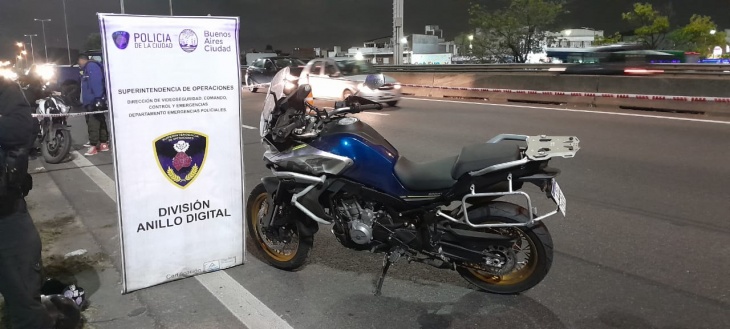 De inmediato se inició la búsqueda y en pocos minutos un pórtico lector de patentes ubicado en la avenida Gral. Paz, a la altura del barrio de Núñez, detectó el paso de la Yamaha MT 800cc color azul con dos ocupantes. Sobre el vehículo pesaba un pedido de secuestro por "hurto" solicitado por la Comisaría Vecinal 13 A de la Policía de la Ciudad.