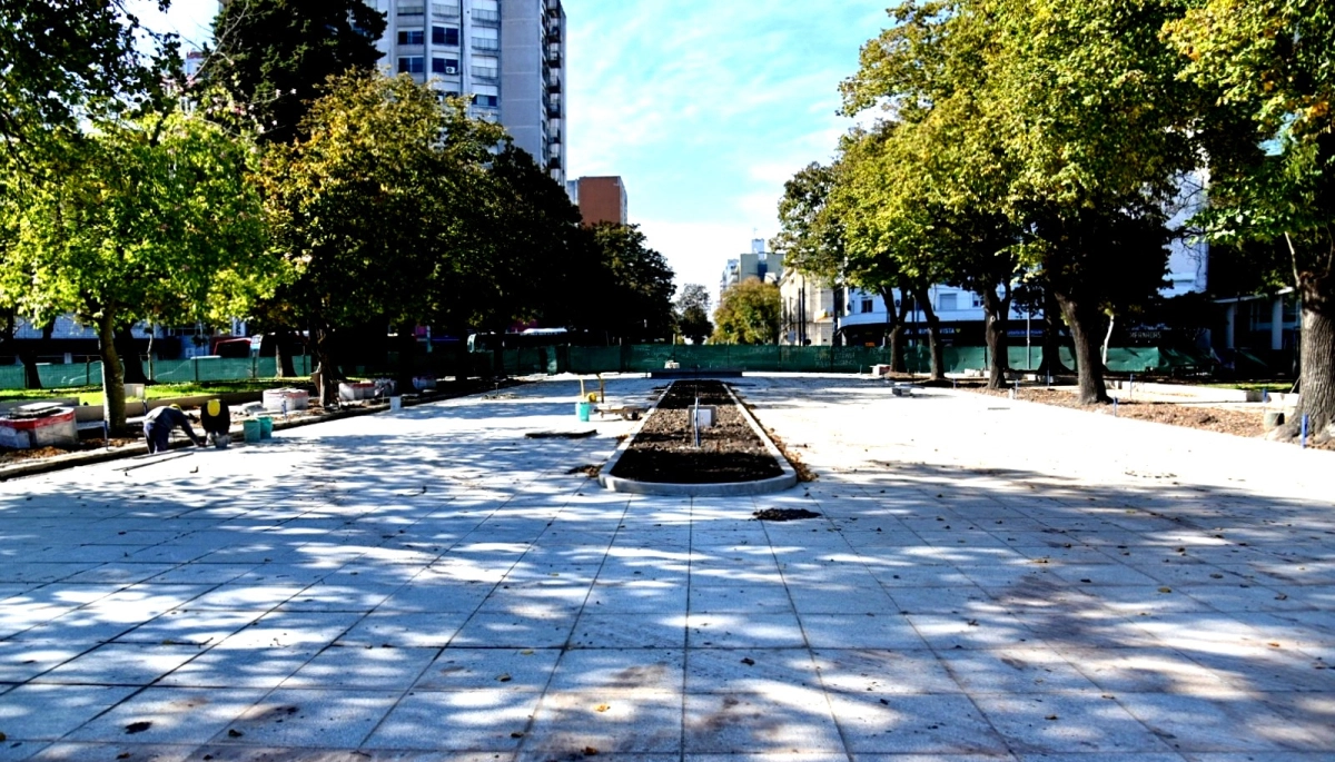 Además, se avanza en la restauración de las columnas ornamentales, el movimiento de suelos, la construcción de contrapisos de hormigón, la colocación de mosaicos en los senderos y la terminación de los espacios de estar y descanso, donde luego se reubicarán los bancos y se incorporará mobiliario.