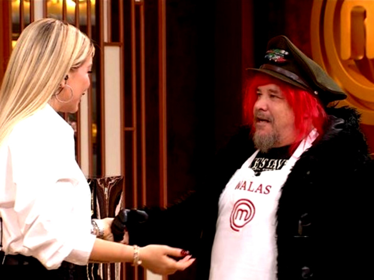 Walas llegó a Masterchef Celebrity con un look similar a los que utiliza sobre el escenario con Massacre, sorprendió a la conductora de Telefe y comunicó que viene a “mostrar su compromiso con la cocina moderna y tradicional”.