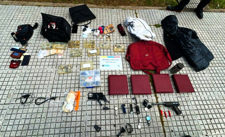 Durante la requisa de rigor y delante de testigos, los oficiales recuperaron 8 relojes de costosas y variadas marcas, cuatro carpetas con monedas de colección, doce recipientes con monedas antiguas, dinero, un pistolón y tres postas de escopeta.