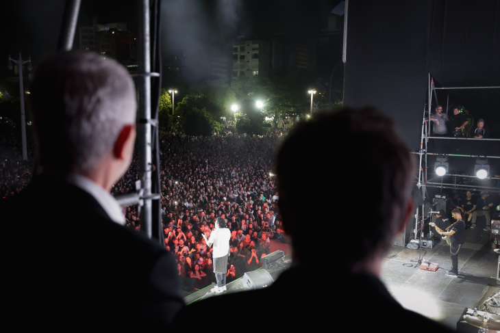 Más tarde, el Gobernador junto al intendente platense, presenciaron la jornada de shows en el marco del aniversario 143° de La Plata y en la semana de la música, tocaron varias bandas entre ellas La retirada, Rara, Los Bicivoladores, Kapanga, Los Besos, Cruzando el charco y Él mató a un policía motorizado.