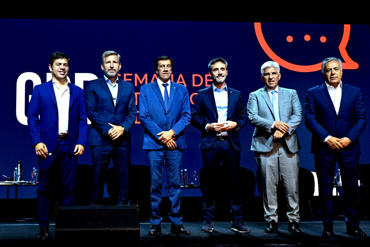 Sumado a Cornejo y Kicillof, estuvieron presentes en el evento los gobernadores: Carlos Sadir (Jujuy), Rogelio Frigerio (Entre Ríos), Claudio Poggi (San Luis).