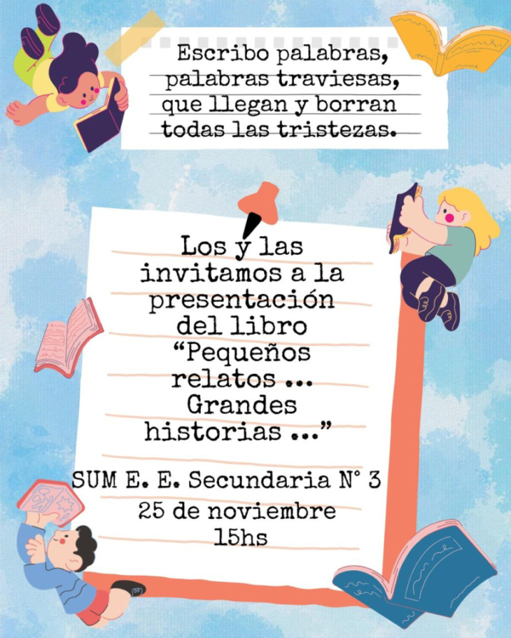 El Municipio de Adolfo Gonzales Chaves invita a toda la comunidad a participar de la presentación del libro institucional de la Escuela de Educación Temprana N°1 (ex CATDI), titulado “Pequeños relatos… Grandes historias”. El encuentro se realizará el próximo martes 25 a las 15 horas, en el SUM de la Escuela Secundaria N°3.