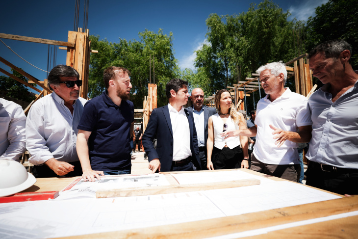 Axel Kicillof, gobernador de la provincia de Buenos Aires, recorrió este miércoles los avances de obra de una nueva escuela secundaria que formará parte del Polo Educativo “Nueva Esperanza” en Lomas de Zamora. Fue junto al director general de Cultura y Educación, Alberto Sileoni; la ministra de Ambiente, Daniela Vilar; el intendente local, Federico Otermín; y la jefa de gabinete municipal, Sol Tischik.