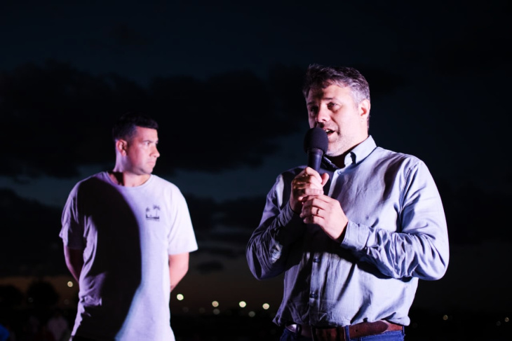 Previo a la cuenta regresiva, el Intendente municipal, Lisandro Hourcade, y la Secretaria de Obras y Servicios Públicos, Julia Mazzoni, brindaron unas palabras a los presentes en las que destacaron la labor de los empleados municipales y destacaron el trabajo en equipo.