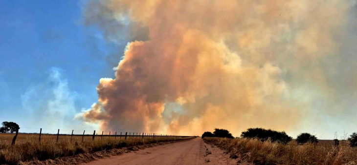 Todo el territorio pampeano se mantiene en alerta roja por riesgo extremo de incendios, debido a las elevadas temperaturas, presencia de material combustible seco y la probabilidad de tormentas eléctricas que podrían originar nuevos focos.