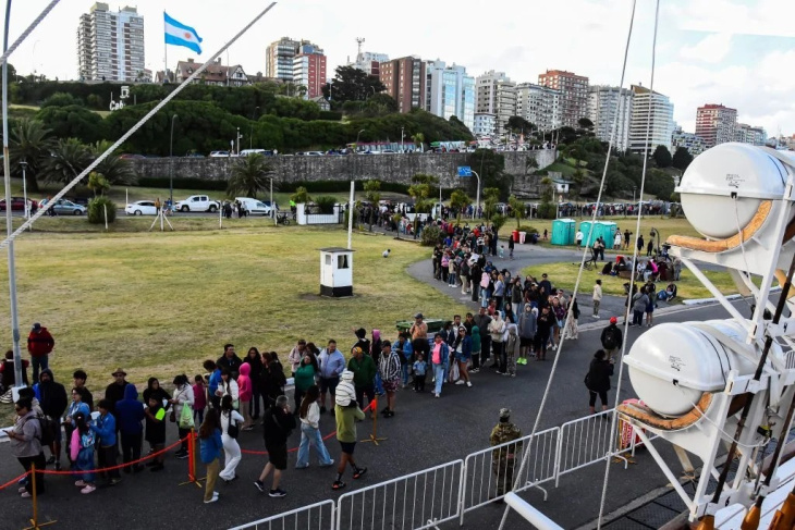 La jornada completa de puertas abiertas del pasado domingo fue marcada por más de 5.000 visitantes y filas que superaron las dos cuadras, según registros de medios locales. Marplatenses, turistas y familias enteras aprovecharon el clima más fresco para recorrer la nave que es conocida como la “Embajadora de los Mares”.
