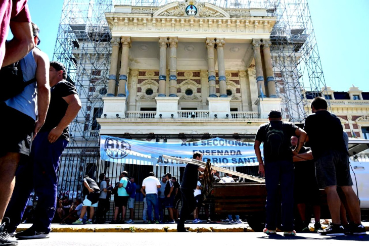 Hoy por la mañana, columnas de trabajadores del Astillero Río Santiago se concentraron en las inmediaciones de la Gobernación bonaerense, con el objetivo de rechazar la última oferta salarial, que se dio en el marco de las paritarias y pedir un aumento mayor.