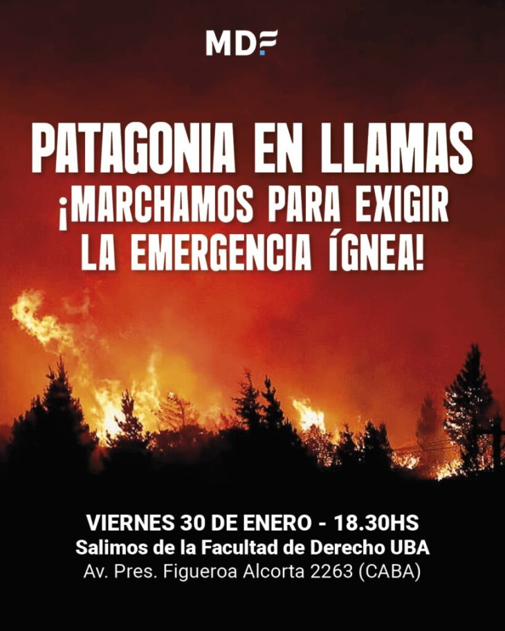 El Movimiento Derecho al Futuro (MDF), espacio que responde al gobernador bonaerense Axel Kicillof, convocó a una marcha para este viernes a las 18.30 con el objetivo de reclamar la declaración de la emergencia ígnea por los incendios que afectan a distintas zonas de la Patagonia. La protesta se realizará con apoyo de otros sectores del peronismo y apunta a presionar al Gobierno nacional.
