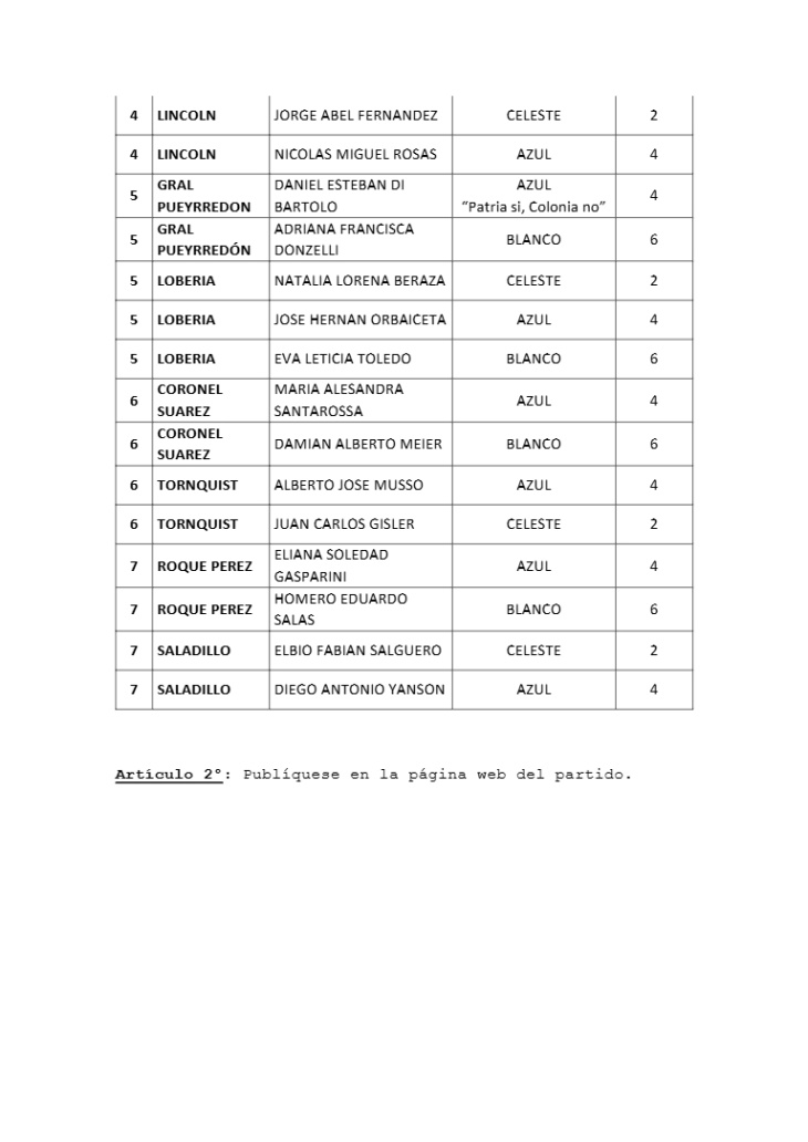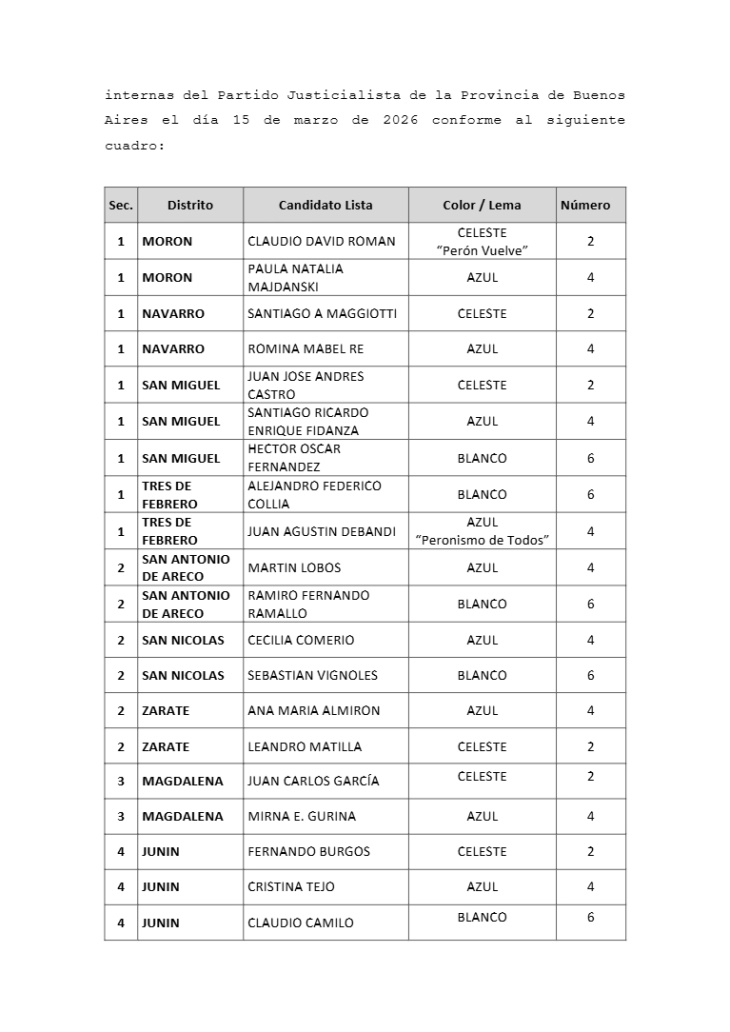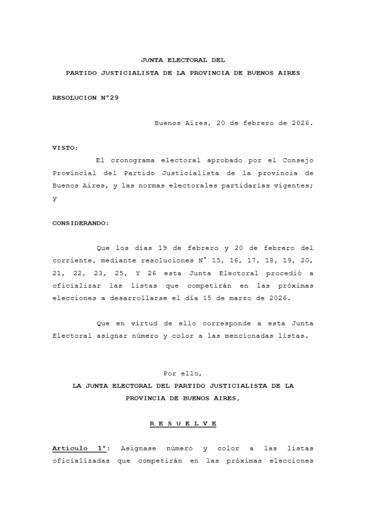 El proceso se encuadra en el cronograma aprobado por el Consejo Provincial y completa la oficialización de nóminas realizada días atrás. Con la Resolución 29, el partido terminó de dar forma a la oferta electoral interna, un paso clave en medio de debates por la conducción y la estrategia opositora frente al escenario político bonaerense.