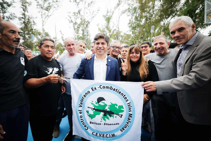 Axel Kicillof, gobernador de la provincia de Buenos Aires, inauguró este martes un playón deportivo en el “Parque Abuelas de Plaza de Mayo” del municipio de Berisso, donde además puso en funcionamiento un nuevo espacio para mejorar la atención de la Comisaría de la Mujer. Fue junto al ministro de Seguridad, Javier Alonso; su par de Mujeres y Diversidad, Estela Díaz; la directora ejecutiva del Organismo Provincial de Integración Social y Urbana (OPISU), Romina Barrios; y el intendente local, Fabián Cagliardi.