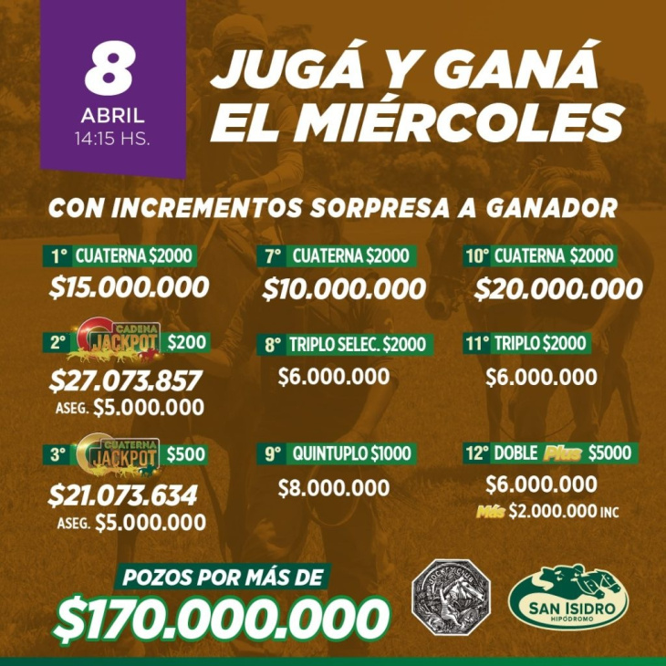 El HSI tendrá actividad el miércoles 8 de abril y ofrecerá un programa que contará con trece carreras, entre las 14:15 y las 20:15 horas. La reunión contará con pozos por más de $160M y habrá incrementos sorpresa.