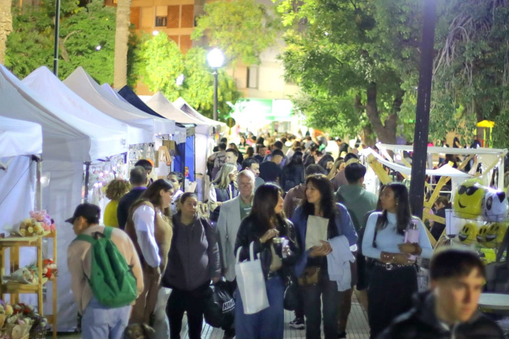 Desde horas de la tarde, la Plaza Rivadavia y su entorno se convirtieron en un espacio de encuentro para vecinos y vecinas, con feria de la economía social que reunió a más de 120 emprendedores, feria de artesanos, propuestas gastronómicas, actividades para las infancias, peña, intervenciones artísticas itinerantes y diversas expresiones culturales.