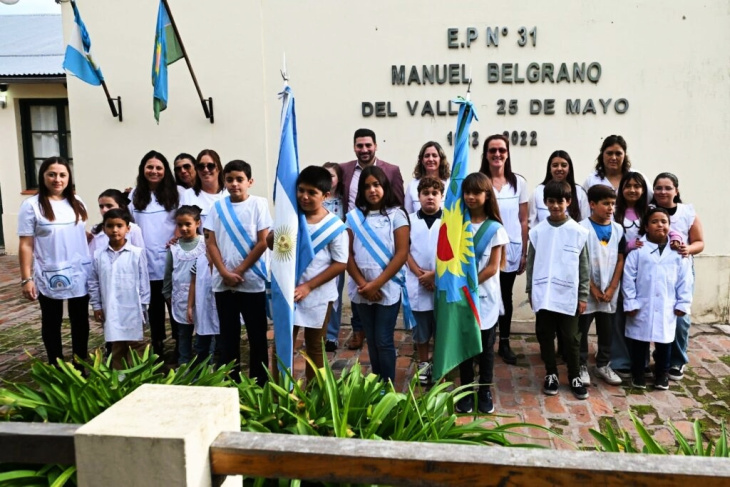 La Municipalidad de 25 de Mayo informa que el Intendente Municipal, Ramiro Egüen, visitó la localidad de Del Valle para participar de las actividades escolares relacionadas con el 128° Aniversario del pueblo. En la Escuela Primaria N° 31 "Manuel Belgrano", los alumnos de 5to y 6to año, junto a la docente Mariel Martínez, se encuentran trabajando en la Unidad Didáctica: “128° Aniversario de nuestro pueblo: Del Valle”.
