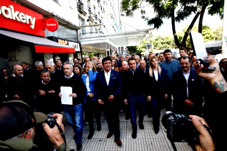 Antes, los alcaldes se concentraron en la sede de la Federación Argentina de Municipios (FAM), que preside el intendente matancero Fernando Espinoza, lugar elegido para que los intendentes estampen su firma en apoyo al reclamo.